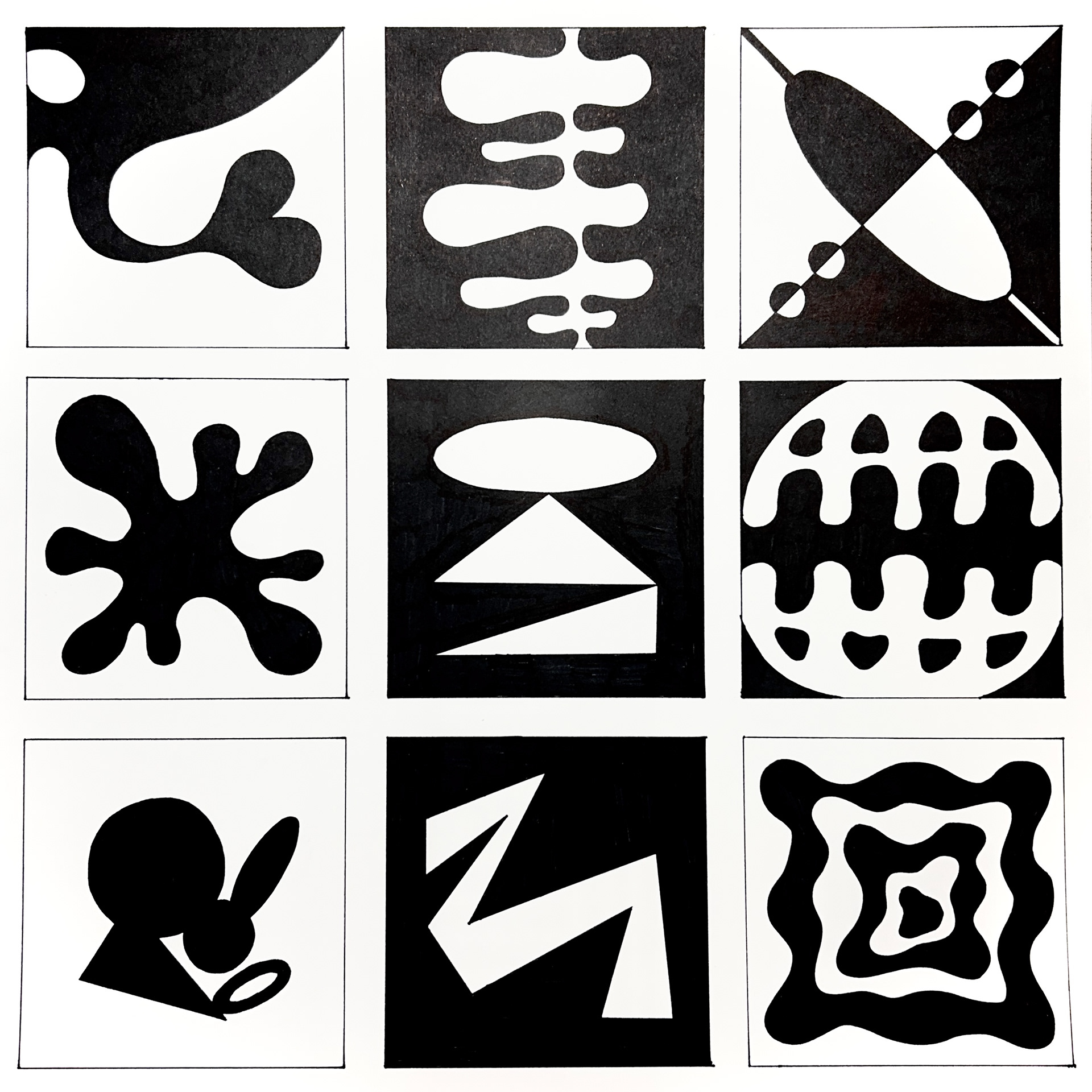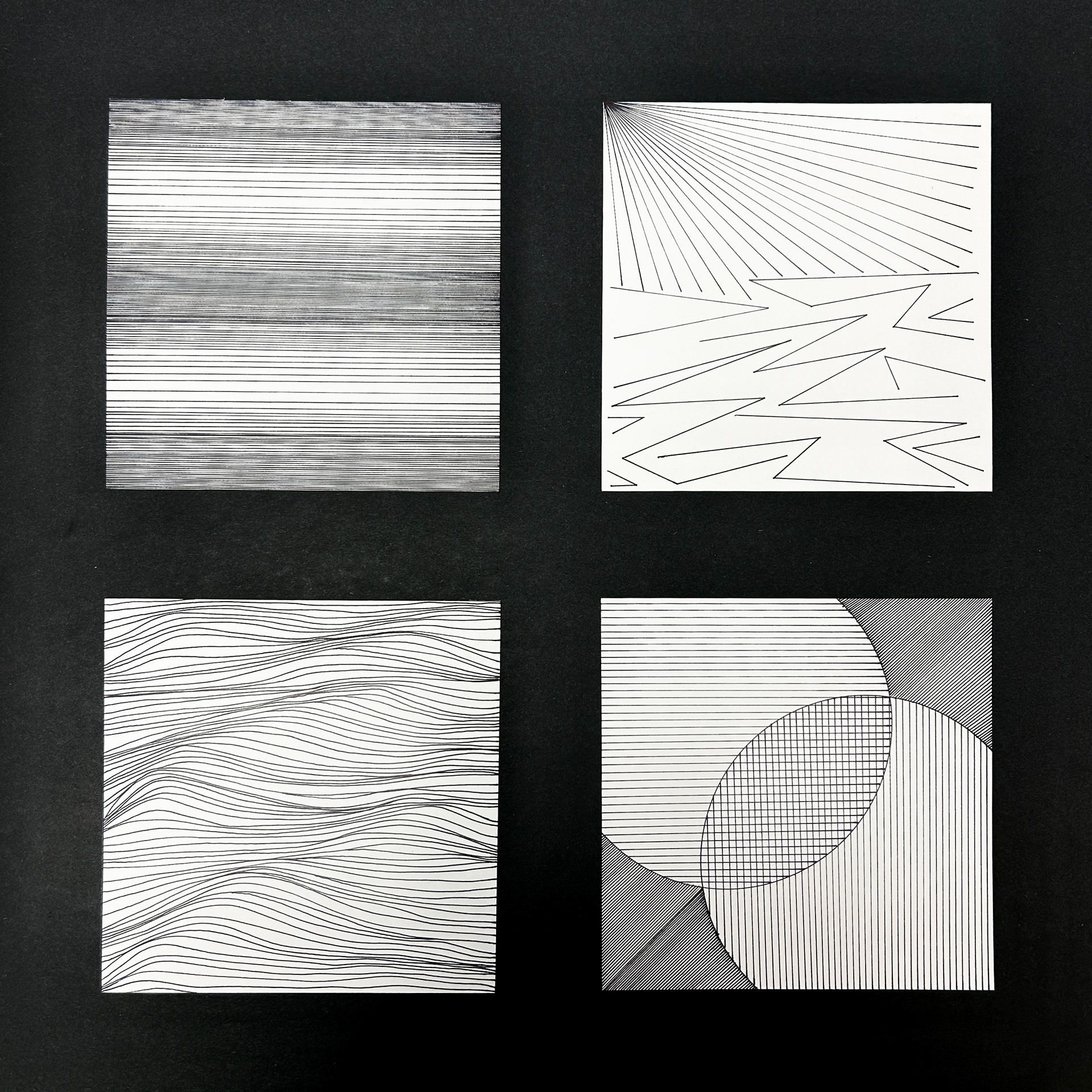 Developed abstract drawings focusing on dots, lines, textures, and patterns, exploring personal visual language during a 2D drawing class at North Park University.